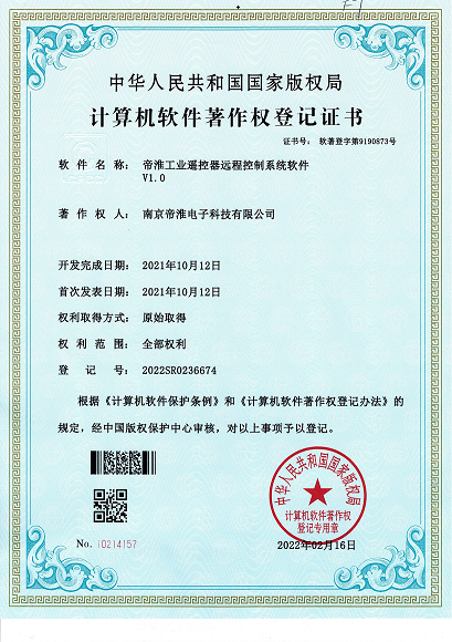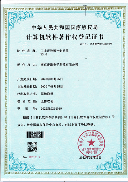 南京帝淮电子科技有限公司,国内工业??仄餍幸盗炀笠?,自主研发、定制、非标设计各类工业级无线??仄鳌⒐ひ导队邢呖刂破鳌⒅悄芑灾魉惴呒谋镜乜刂破鞯认盗胁?。已经申请及正在申请的技术专利、外观专利有近三十项左右,并通过了CE欧盟认证、国家级试验检验报告、EMC电磁兼容认证等。