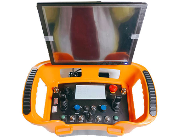 • 1个双轴摇杆+12个按键+1个两档旋转开关7寸触摸屏平板型工业无线遥控器